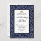 This elegant 18th birthday invitation has blue glitter scrollwork, a gold tiara crown, and a black background with a personalizable template to create your own message. The invitation template is customizable in the listing editor and is also available as a digital download that's printable after you personalize it. The formal design is a classic way to set an elegant tone for your milestone birthday celebration.