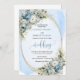 Set the tone for an unforgettable celebration with this elegant watercolor wedding invitation, beautifully designed with dusty blue florals, soft white peonies, and delicate eucalyptus