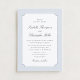 This refined wedding invitation features a soft blue ornamental frame that gently surrounds the wording, creating a graceful and timeless presentation. The delicate border gives the design structure and elegance while keeping the overall look clean, airy, and sophisticated — a style many women choose for classic, romantic celebrations.