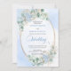 Make your special day unforgettable with this elegant watercolor wedding invitation, thoughtfully designed to shine with Zazzle’s premium print quality. Featuring soft pastel blue hydrangeas, delicate eucalyptus and greenery foliage, and a refined gold glitter oval frame, this invitation blends timeless romance with modern sophistication.