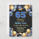 Convites Elegant Blue Silver Gold 65th Birthday Photo