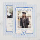 Elegant Blue Stripes Bow Frame with Two Photo Graduation Party Invitation.