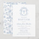 Convites Elegant Blue Vintage Floral Cross Baptism