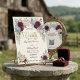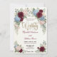 Invite guests with this contemporary floral design, featuring rich maroon botanicals, soft rose accents, and a scannable website link for seamless RSVPs.This stationery layout features a sophisticated botanical frame composed of watercolor-style florals, highlighting deep maroon and soft rose blossoms. The symmetrical composition incorporates painted greenery borders over a clean, off-white background to ensure high visual contrast and typographic accessibility. A prominent, high-resolution scannable square replaces traditional physical RSVP text, balanced by clean, structured typography for key event details and names. Please note: This is a flat printed image with a printed watercolor effect, not actual raised material.
