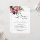 Gorgeous welcome dinner invitation with beautiful watercolor floral detail showcasing your rehearsal details. "Welcome" in modern handwritten calligraphy. Floral in a beautiful blend of burgundy, blush, pink, dusty rose, mauve, and berry hues. Invitation with both rehearsal time and place, as well as dinner time and place details. Card's back with the same floral detail as the front. Part of our "Romance Floral" collection with a variety of coordinating products available, including full stationery products for your event. Visit the complete collection by clicking on the link below "Other products from this collection."