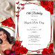 This elegant red and black 18th birthday debut invitation has red roses and red butterflies with a personalizable template to create your own message. Add your photo on the back to personalize the image. The invitation template is customizable in the listing editor and is also available as a digital download that's printable after you personalize it.