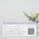 This wedding invitation is designed to look like a plane ticket. It features a semi-opaque illustration of a castle, which you can replace with an image of the destination wedding venue. Elegant dark blue lettering in serif and script fonts lay out the bride and groom names, and details of the wedding, including the location, date, and a QR code to RSVP.