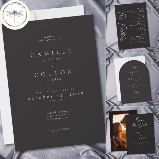 Convites Elegant Charcoal Black Minimalist Wedding