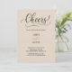 The eye-catching 'Cheers!' in elegant, flowing script immediately conveys a sense of joy and festivity, setting an upbeat tone for your special day. This beautiful typography is perfectly complemented by a clean, modern sans-serif font for all your essential details, ensuring clear readability for your guests. The soft, warm beige background provides a classic and versatile canvas, enhancing the overall feeling of refined warmth.