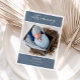 Welcome your precious bundle of joy with this elegant chic classic photo baby announcement card. The design offers a clean blue and white timeless layout to display your newborn's first portrait, names and birthdate. The style calligraphy script adds a fantastic look to the template. Whether you’re welcoming a baby girl or baby boy, this design offers a beautiful way to introduce your newest miracle to the world.