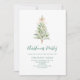 Elegant Christmas tree party invitation. Easy to change the text. Pretty Christmas tree with pink coquette bow on front and back of invitation.