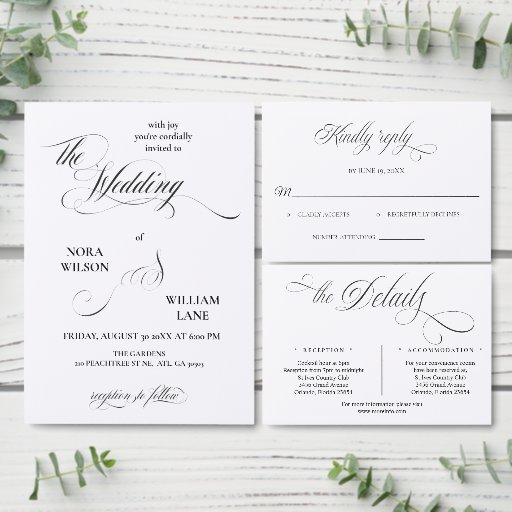 Elegant Classic Calligraphy Wedding Invitation, This elegant and minimalist design features the words the wedding in a modern calligraphy script. Easily customize important information. Please contact the designer about this design and more options