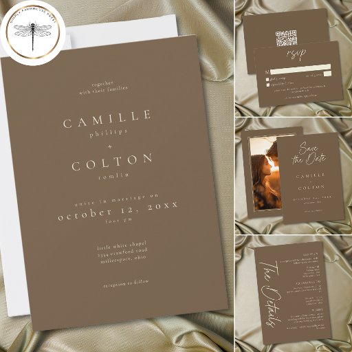 Convites Elegant Cocoa Brown Minimalist Wedding
