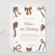 Convites Elegant Coquette Brown Bow Birthday Invitation
