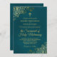 Convites Elegant Dark Teal & Gold Modern Catholic Wedding