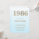 Celebrate a milestone birthday with elegance using this 1986 Light Blue and Gold Birthday Invitation. Featuring a soft pastel blue background and sparkling diamond-style gold numbers, this design is perfect for a 40th birthday celebration or any special event honoring someone born in 1986.