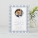 Elegant Dusty Blue Bow Photo Boy First Communion Invitation. For best results upload a square image of the child.