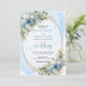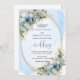 Set the tone for an unforgettable celebration with this elegant watercolor wedding invitation, beautifully designed with dusty blue florals, soft white peonies, and delicate eucalyptus