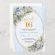 Convites Elegant Dusty Blue Floral Greenery Sweet Sixteen