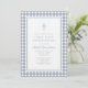 Elegant Dusty Blue Gingham Boy First Communion Invitation.