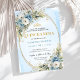 Convites Elegant Dusty Blue Gold Greenery Quinceañera