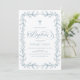 Convites Elegant Dusty Blue Hand Drawn Floral Frame Baptism