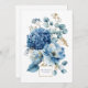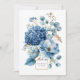 Invite your guests with breathtaking elegance using this sophisticated floral wedding invitation. The design showcases a stunning, painterly watercolor bouquet arranged vertically against a clean white background. A magnificent dusty blue hydrangea provides a lush focal point, beautifully complemented by large, soft peony or rose-like flowers in shades of steel blue and creamy white with blue accents. This exquisite arrangement is artfully interwoven with dusty blue-green eucalyptus leaves and delicate sprays of sparkling gold glitter botanicals, adding a touch of modern luxury and magical shimmer. A tiny, minimalist gold frame rests near the base, adding a subtle, sophisticated detail. Perfect for sophisticated weddings (especially with a 'something blue' theme), this design is also ideal for elegant bridal showers, milestone birthday celebrations, anniversary parties, or upscale garden events. This versatile design can also be adapted for sophisticated corporate galas, charity fundraisers, or elegant announcements requiring a touch of refined floral beauty.