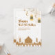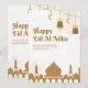 Celebrate the spirit of sacrifice with this beautifully designed Eid Al-Adha greeting card. Featuring a sophisticated gold and cream color palette, this poster combines traditional Islamic motifs—like hanging lanterns (fanous), crescent moons, and a majestic mosque silhouette—with a modern aesthetic.