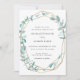 Modern, elegante Hochzeiteinladungskarte in Weiß, Grün, Gold (Imitat), Eukalyptus-Design.