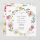 A beautiful First Baptism invitation featuring a delicate watercolor floral wreath with pastel flowers and butterflies. The soft colors and elegant script create a romantic and timeless design, perfect for celebrating.