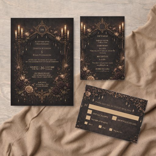 Elegant floral gothic halloween wedding Invitation