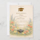 Soft, romantic and timeless, this pastel botanical graduation design features a delicate oval wreath of blush roses, buttercream blooms, and airy blue florals framed with an elegant gold arch. A subtle parchment background and classic typography create a refined, storybook aesthetic that feels both feminine and sophisticated. Finished with a rolled diploma tied in a blue ribbon at the base, this design is perfect for a spring or summer graduation party with a graceful, garden-inspired theme. Fully customizable for name, school, date, and event details.