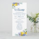 Um elegante programa de casamento floral de limão. Coordena-se com a coleção de casamentos do limão floral. Este programa de cerimônia personalizável apresenta uma folhagem de cor d'água amarela e azul. Para fazer alterações avançadas, vá para a opção "Clique para personalizar mais" em Personalizar este modelo. Projetado para você por Blackberry Boulevard.