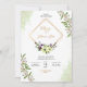 A beautifully designed wedding invitation featuring delicate white and yellow flowers with green leaves. The card displays the names of the couple in elegant cursive font, with event details including date, day, and time in a clean, modern layout. Perfect for a sophisticated and nature-inspired wedding celebration.