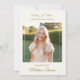 The reverse side of the invitation offers two additional photo templates, allowing you to share more cherished memories. This feature provides a comprehensive view of your journey, highlighting the moments that led to your success. The soft beige background offers a serene and inviting canvas, creating a warm and elegant atmosphere that perfectly complements the golden text and delicate frame.