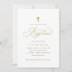 Convites Elegant Gold Cross Calligraphy Photo Baptism