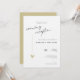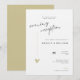 This minimal and elegant evening reception wedding invitation is perfect for a modern wedding reception. Design features an handwritten font and modern minimalist design with a golden heart. You can change the names, wedding location and date, and other details, click «Personalize».