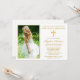 Modern Elegant First Holy Communion Invitation with Gold Cross and Photo.