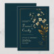 Convites Elegant Gold Floral Navy Wedding