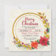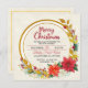 Invite your family and friends to celebrate the holidays with this elegant and festive Christmas party invitation card. The design features a beautiful gold circular glitter frame surrounded by a classic holiday border of red and white poinsettias, holly berries, and gilded leaves. The text is easily personalized with your party details, including the date, time, location, and RSVP information. This card is perfect for any Christmas gathering, from a casual open house to a formal dinner.