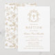 Mark this sacred occasion with this elegant gold vintage floral cross baptism invitation featuring a refined cross encircled by an ornate crest for a distinguished and timeless presentation. The gold design creates a graceful and elevated look, paired with classic typography and flowing script for the child’s name. Ideal for a formal church ceremony, this gender-neutral baptism invitation offers a sophisticated, faith-centered style suitable for baby girls and boys. The reverse side showcases a coordinating Chinoiserie floral pattern with delicate flowers, butterflies, and bees in matching gold for a cohesive and heirloom-inspired finish.