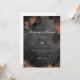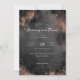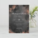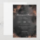This elegant wedding invitation features a sophisticated vertical layout with a dark gray background adorned with scattered gold and copper sparkles, creating a festive atmosphere. The design combines modern and vintage elements through the use of script typography for names and classic serif fonts for details, conveying a sense of celebration and formality. Customizable placeholders allow personalization for names, dates, and locations, making it perfect for a memorable event at an upscale venue. The overall mood is one of joy and anticipation, ideal for couples looking to celebrate their special day in style.