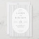 This elegant wedding invitation features a clean, minimalist design with vertical striped borders framing an oval-shaped central area. The color palette consists of soft gray tones that create a sophisticated and understated look, perfect for a formal event. Classic serif typography is used throughout, emphasizing the couple's names and event details in a timeless style. The layout is balanced and structured, ensuring clarity and readability while conveying a mood of elegance and simplicity. Ideal for couples seeking a refined and modern aesthetic for their special day.