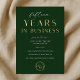 Elegant Green & Gold Business Anniversary Invitations featuring stylish faux gold foil effect, minimal layout and company logo. This classy company birthday invite is great to use for your business anniversary, launch party or milestone! Featuring professional serif and script fonts, simple, yet chic design that is sure to impress.