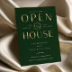 Create stylish business event invites for your house warming or new business party with this faux gold effect Open House Invitation. This elegant emerald green and gold open house event invitation features a trendy layout with sophisticated fonts, space for your logo and event details, perfect to invite guests to your Housewarming Celebration.