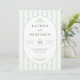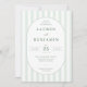 This elegant wedding invitation features a classic design with vertical light green stripes on a darker green background, creating a fresh and sophisticated look. The central oval frame highlights the event details in a clean serif font, emphasizing clarity and formality. Perfect for couples seeking a timeless aesthetic, this invitation conveys an air of elegance and refinement, making it ideal for formal celebrations. Its minimalist approach focuses on typography, ensuring that all essential information is presented beautifully without distractions.