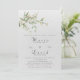 Elegant botanical wedding invitation featuring soft watercolor greenery on a textured paper background.
