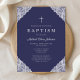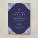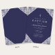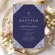 Elegant Lace Navy Blue Baby Boy Baptism Invitation.