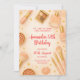 Charming watercolor design with blush brushes, perfume bottles, eyeshadows, and golden stars. Perfect for a stylish teen or sweet sixteen birthday celebration.