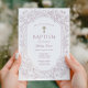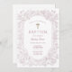 A simple, formal gold cross sits above your event details. The minimalist typography and mauve color palette make this christening invite the perfect choice for a baby girl.